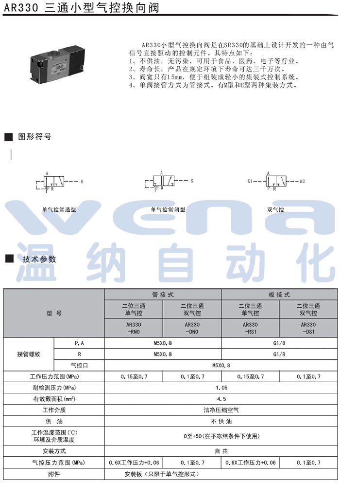 AR340-RN1,AR340-DN1,气控换向阀,无锡生产,温纳厂家