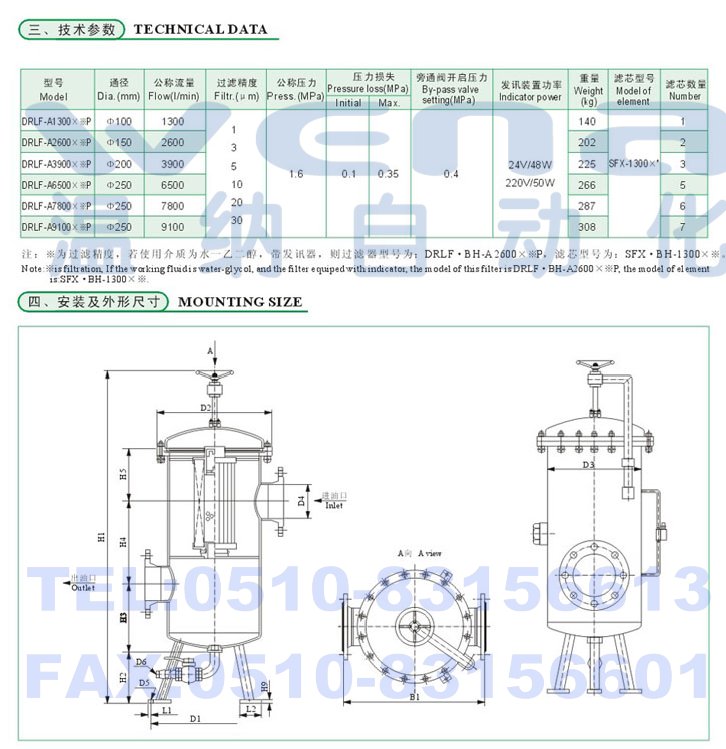 DRLF-A1300*1P,DRLF-A1300*3P,DRLF-A1300*1P,大流量回油过滤器,温纳回油过滤器,过滤器生产厂家0