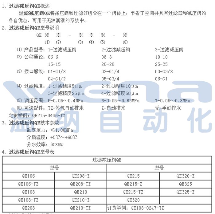 - 产品名称: QE106-0115,QE106-0125,过滤减压阀,无锡生产,温纳WENA厂