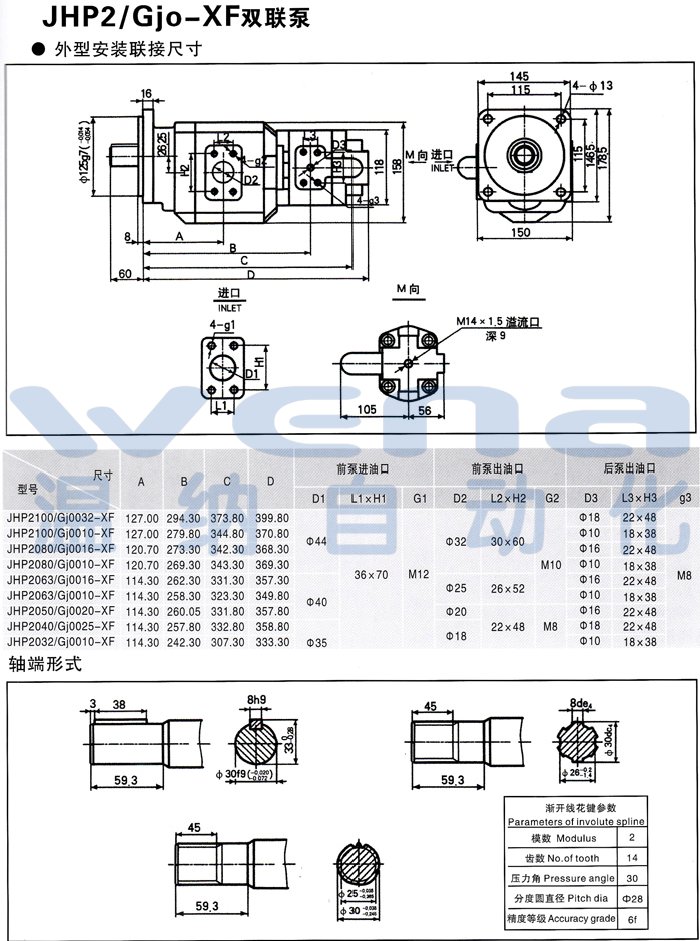 JHP2050/GJ0020-XF,JHP2040/GJ0025-XF,双联齿轮泵,无锡温纳WENA厂